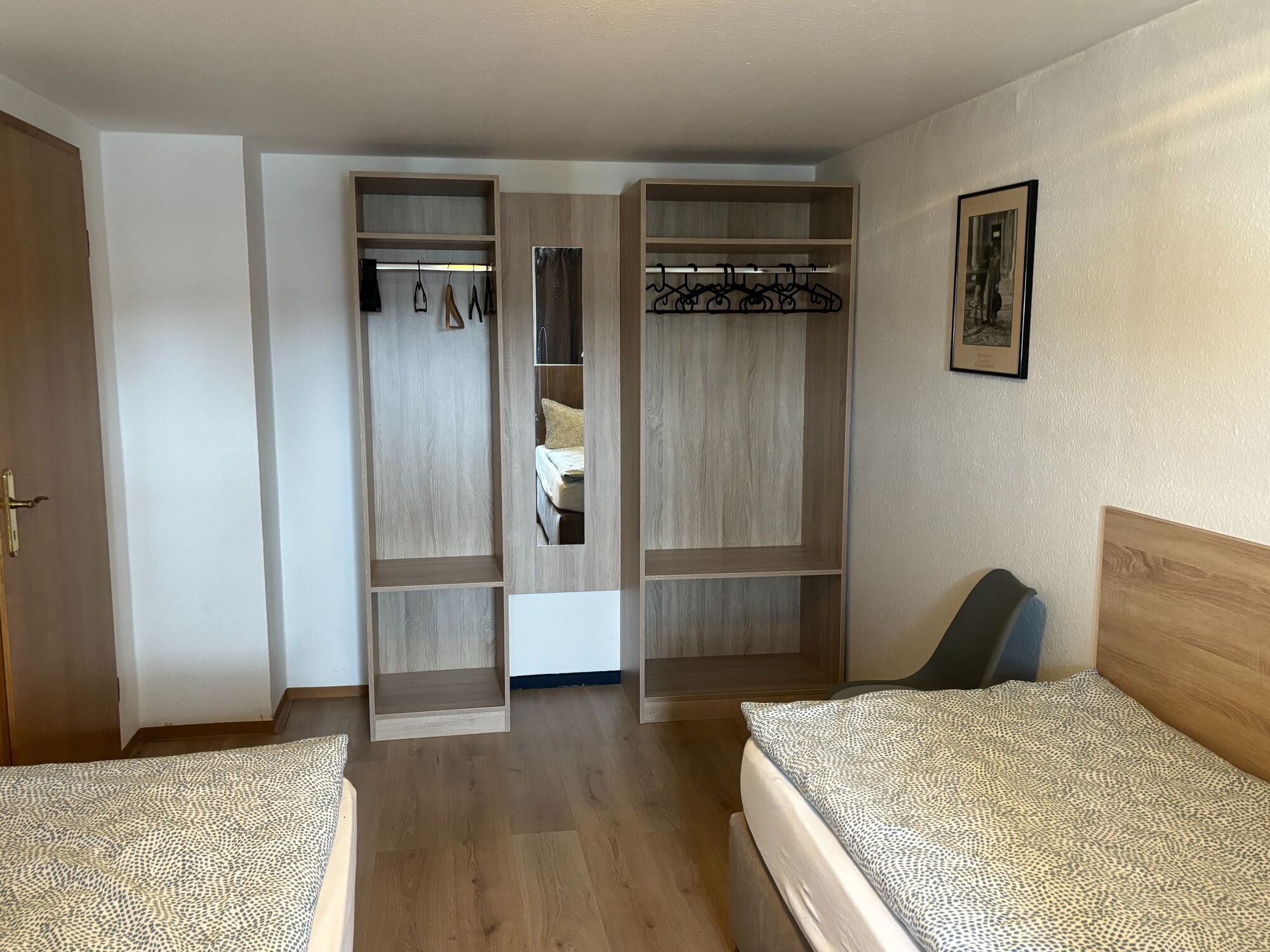 Komfortables Zimmer mit zwei Einzelbetten und eigenem Bad. Keine Küchenzeile im Zimmer, aber Zugang zur voll ausgestatteten Gemeinschaftsküche. Perfekt für preisbewusste Gäste. WLAN und Smart-TV inklusive.