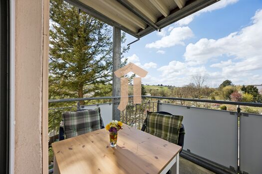 Wohnung mit überdachtem Balkon.