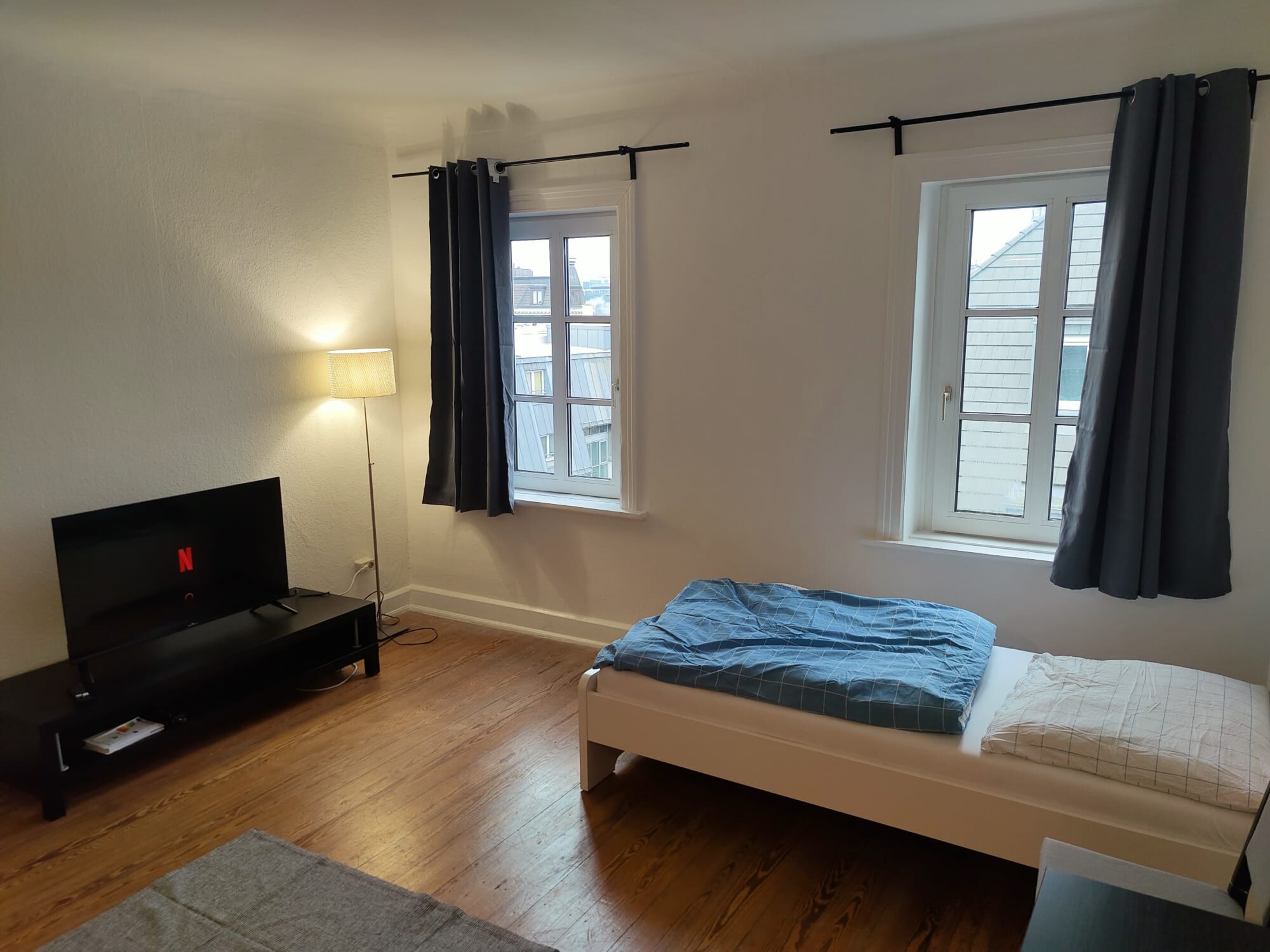 Das Apartment besticht durch seine helle Atmosphäre und durchdachte Raumaufteilung. Ein gemütlicher Schreibtisch lädt zum Arbeiten ein, während das bequeme Bett mit frischer Bettwäsche für erholsame Nächte sorgt. Das moderne Badezimmer mit Dusche bietet alle Annehmlichkeiten.