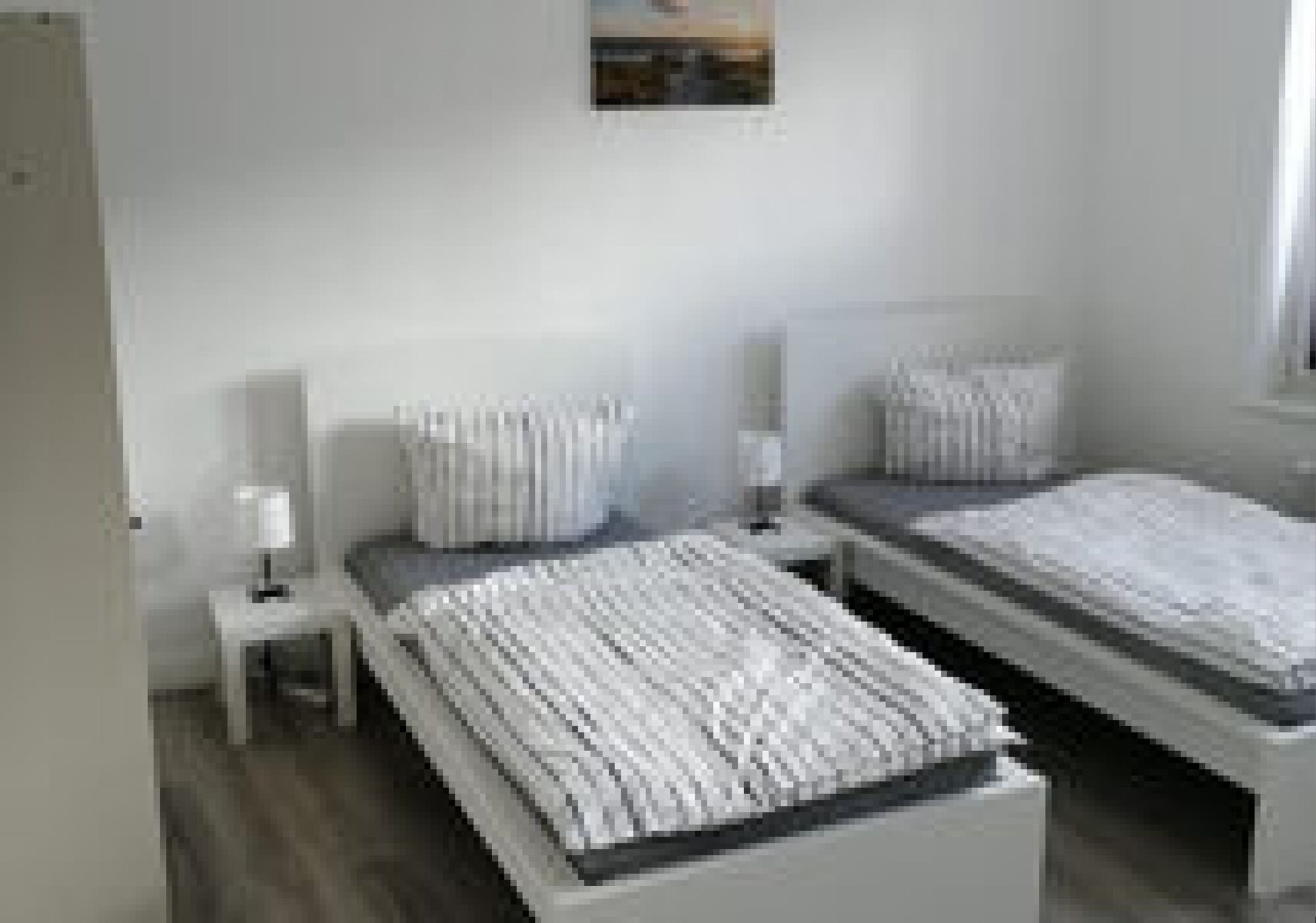 Unsere Unterkunft bietet komfortable Zimmer für Ihre Mitarbeiter. Sie bietet Zweibettzimmer, die mit Schränken, TV, und Tischen bestückt sind. Um Ihren Aufenthalt so angenehm wie möglich gestalten zu können, bieten wir kostenloses WLAN und Internationale Fernsehprogramme an.