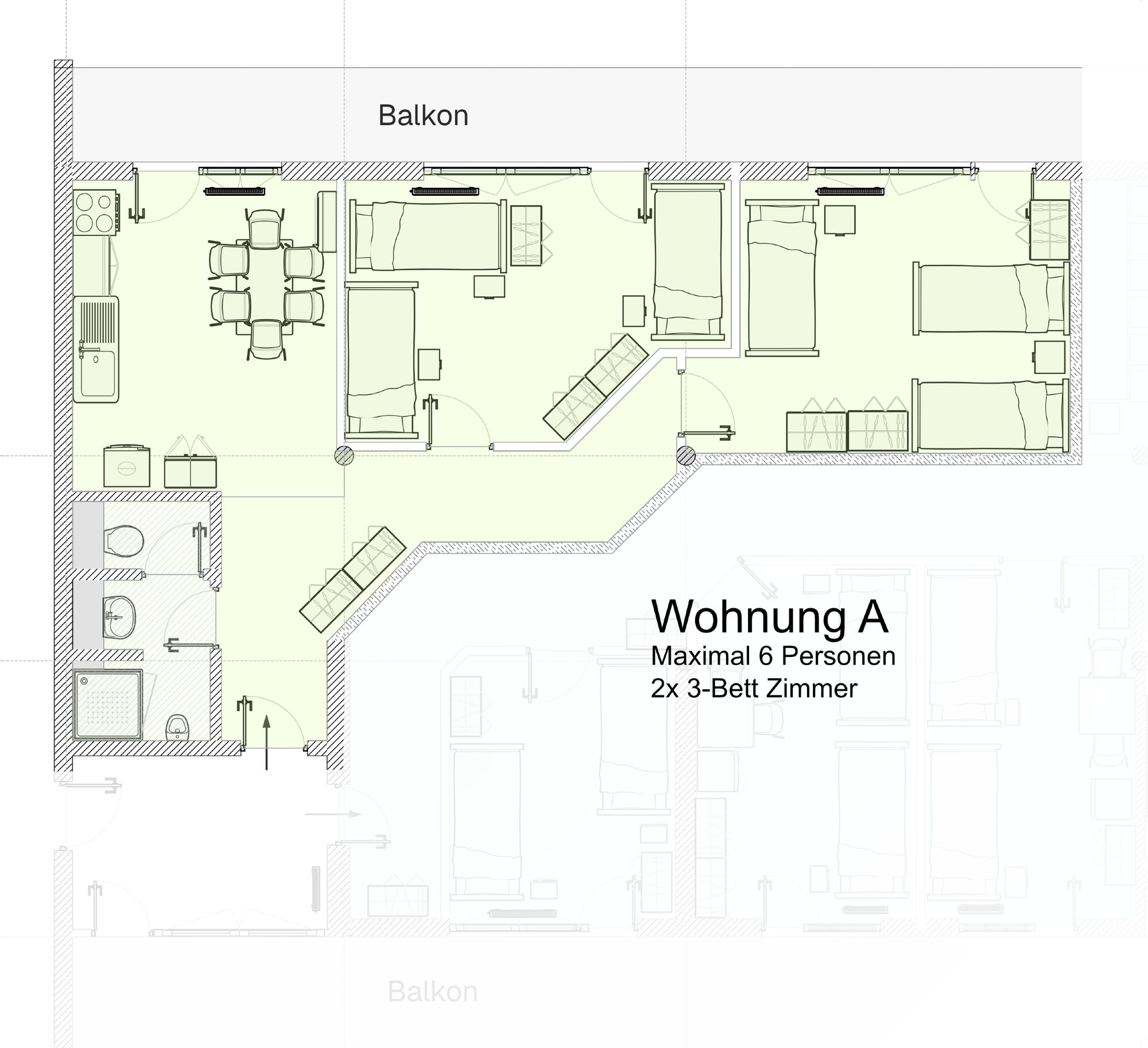 2 Mehrbettzimmer für jeweils 3 Personen